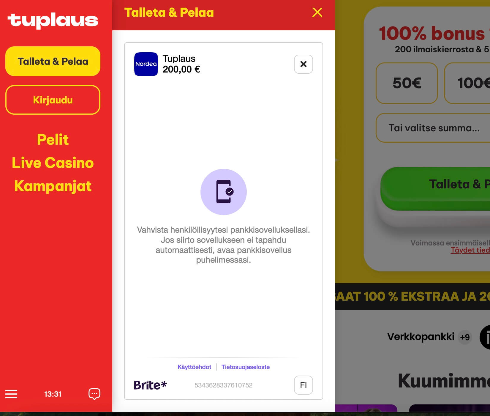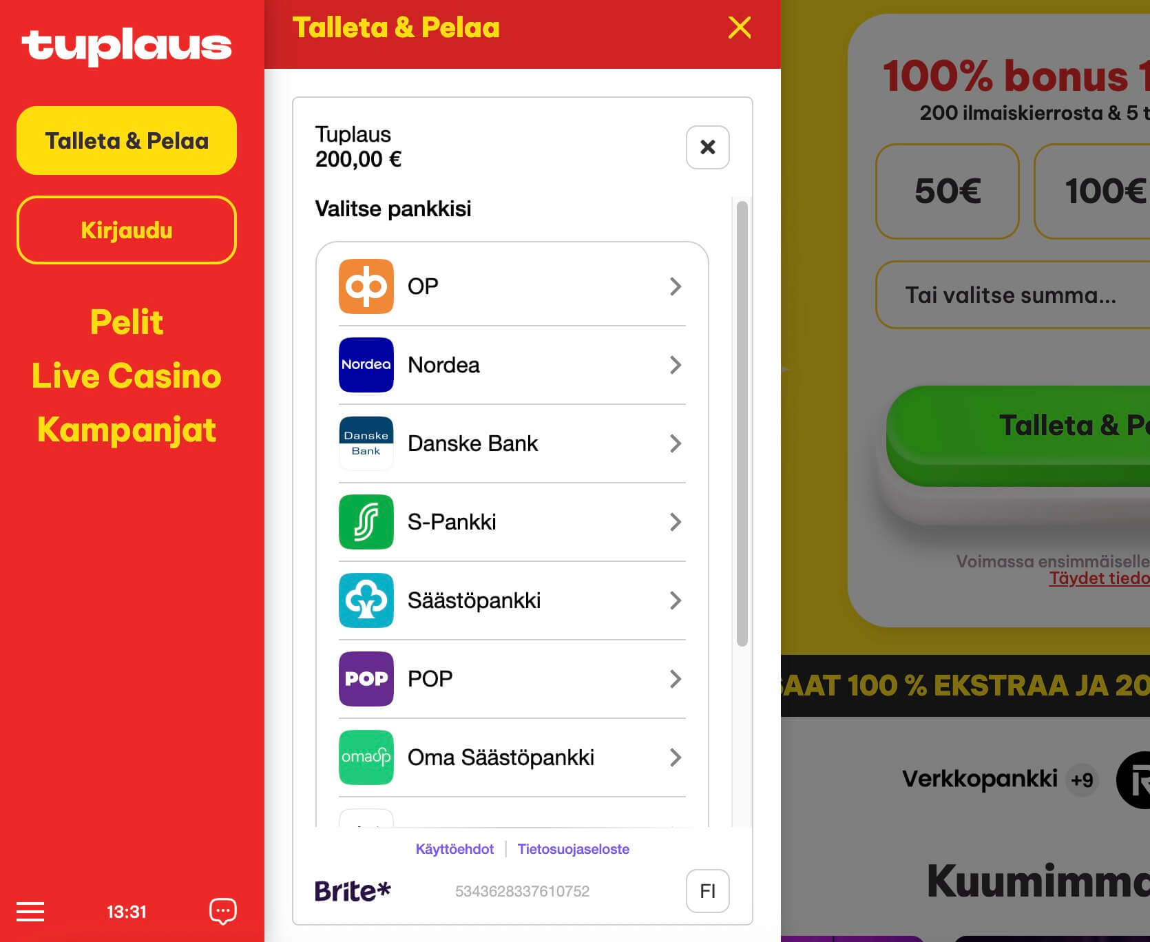 Brite-kasinot hyödyntävät samaa pankkipohjaista tunnistautumista, mutta painottuvat usein moderneihin ja teknisesti kehittyneisiin kasinoalustoihin.