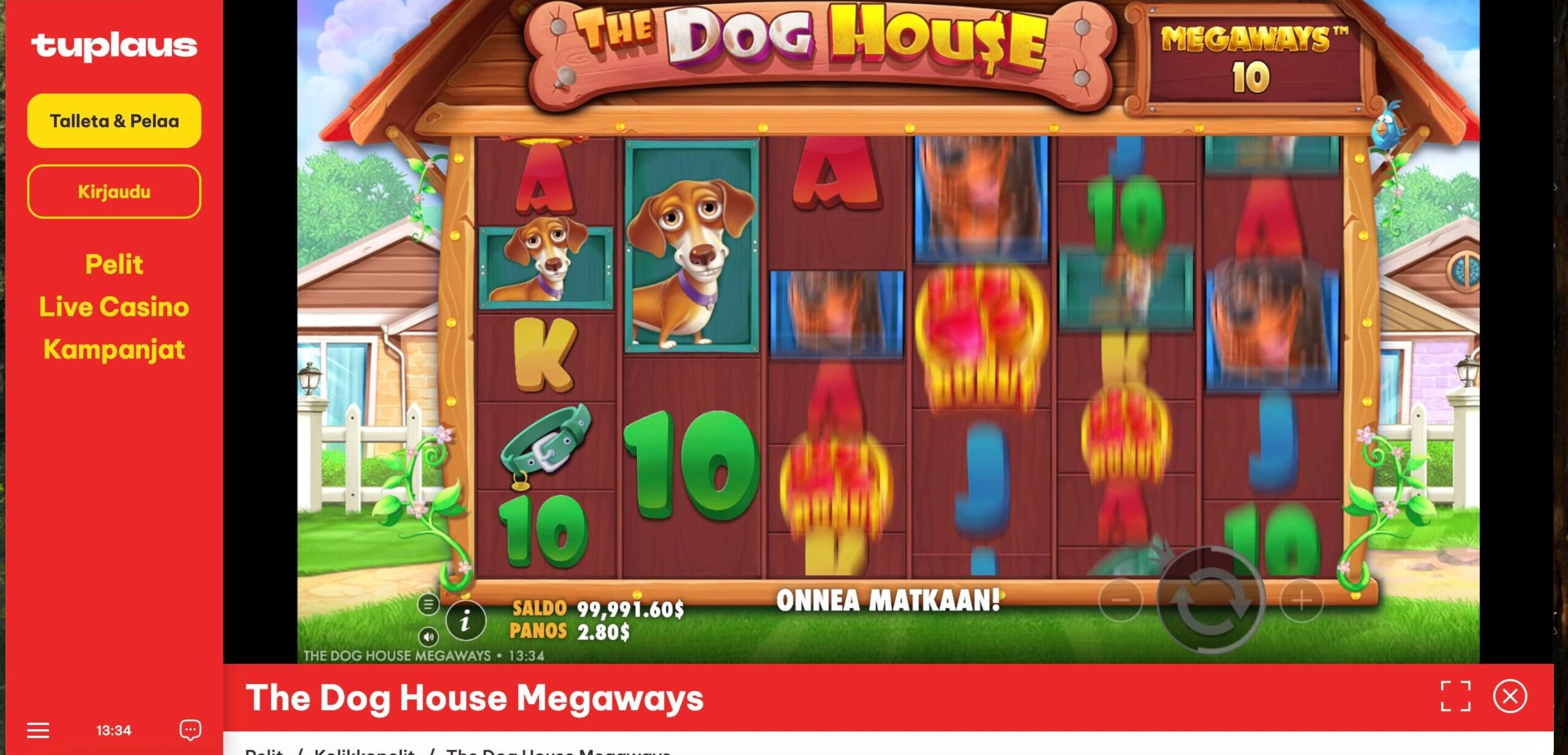 Vahvistuksen jälkeen rahat näkyivät pelitilillä 7 sekunnissa, jonka jälkeen laitoin Dog House pyörimään.